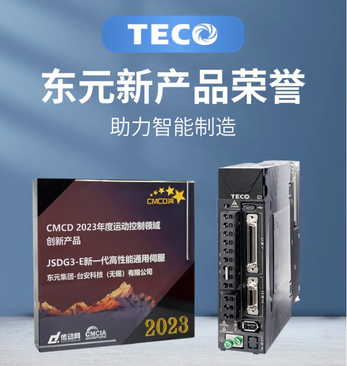 頒獎典禮表彰了伺服、運控/直驅(qū)領(lǐng)域優(yōu)秀企業(yè)品牌、創(chuàng)新技術(shù)、產(chǎn)品、行業(yè)應用。其中東元新產(chǎn)品JSDG3-E系列伺服,榮獲【CMCD2023年度運動控制領(lǐng)域創(chuàng)新產(chǎn)品獎】。