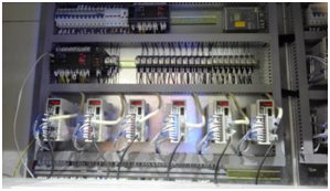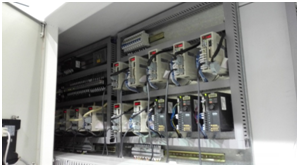 兩臺(tái)PLC主機(jī)之間通過CAN open實(shí)現(xiàn)數(shù)據(jù)交換,同時(shí)控制13套JSDEP系列伺服,3臺(tái)S310+變頻器,并通過10寸HMI實(shí)現(xiàn)人機(jī)交互。